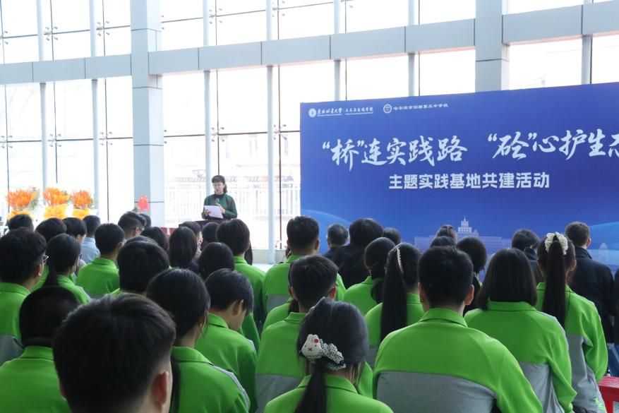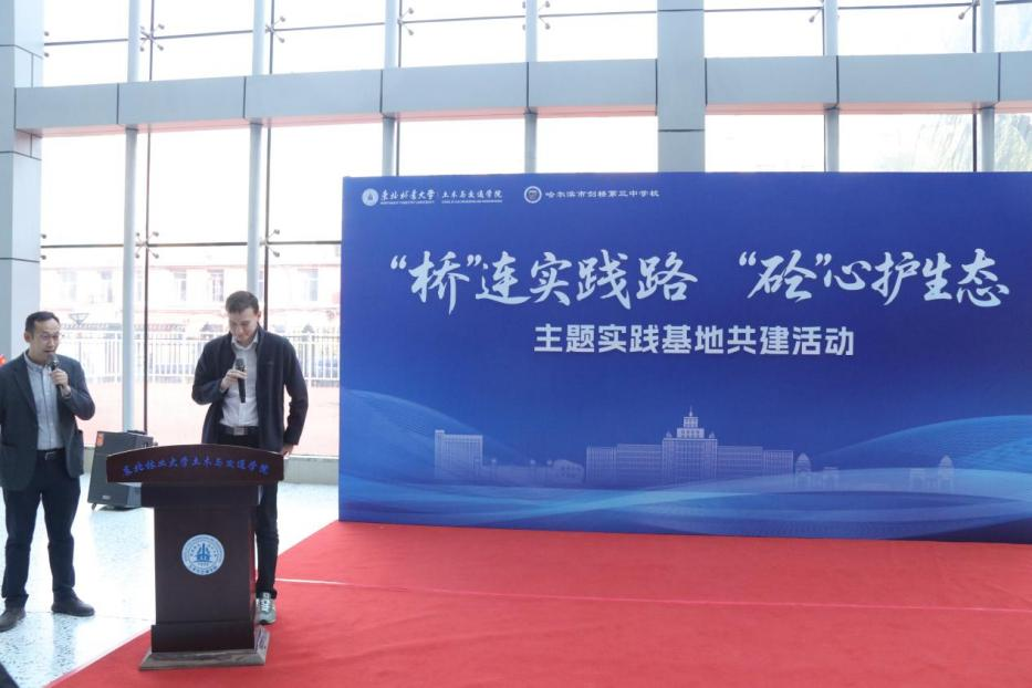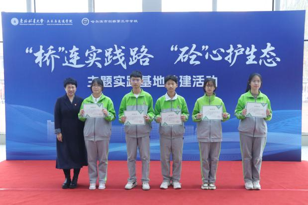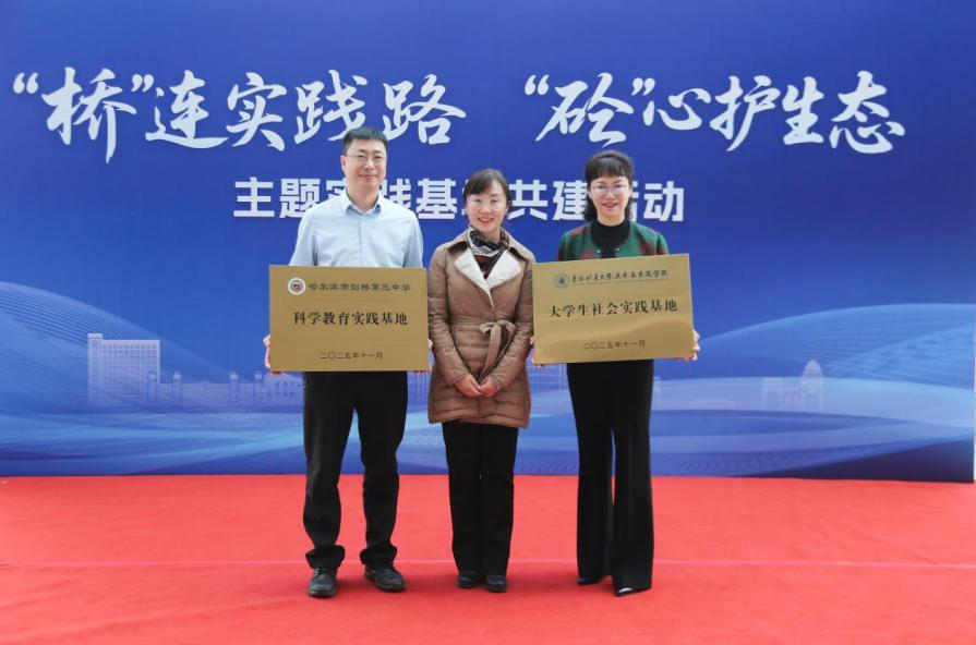 为深入学习贯彻习近平新时代中国特色社会主义思想和党的二十届四中全会精神,推进大中小学思想政治教育一体化建设迈上新台阶,2025年11月5日上午,学院党委与哈尔滨市剑桥第三中学校党总支在永利官网科技楼大厅隆重举行“‘桥’连实践路,‘砼’心护生态”主题实践基地共建活动,以高质量党建推动两校协同育人机制高质量发展。共青团黑龙江省委统战部部长赵晓娜、黑龙江省青年科技工作者协会副会长、秘书长闫成刚、学校团委副书记王海飙、学院党委书记曲发义、哈尔滨市剑桥第三中学校党总支书记、校长常翠萍及双方师生代表参加本次活动,学院萤火志愿者协会为活动顺利开展提供全面保障,开幕式由学院管理科学与工程学科带头人刘洁主持。